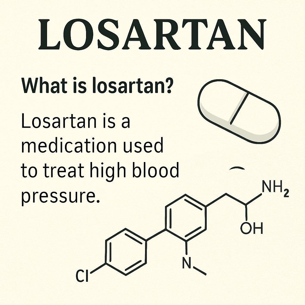 Losartan is a prescription medication in a class called angiotensin II receptor blockers (ARBs). It works by blocking the effects of angiotensin II, a hormone that narrows blood vessels. By reducing that narrowing, losartan helps blood vessels relax, which can lower blood pressure and reduce strain on the cardiovascular system.