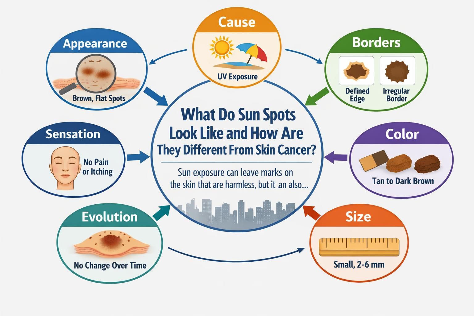 Sun exposure can leave marks on the skin that are harmless, but it can also contribute to changes that need medical attention. If you have ever wondered what does sun spots look like in real life, the answer is usually a flat, evenly colored patch that develops slowly over time, often on areas that see frequent sun. The challenge is that some early skin cancers can also appear as new or changing spots. In this guide, you will learn how sun spots typically look, where they show up, and how they differ from skin cancer. You will also learn practical warning signs to watch for and when it is worth booking a dermatology visit.